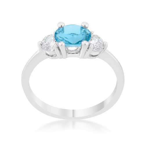 A pair of clear round cut stones accompany a blue topaz oval cut center stone in this elegantly simple 1.2 carat engagement ring.Base Metal: Lead Free Alloy (brass)Style: , Setting Type: ProngsMaterials: , Stone Cut: OvalCarat Weight: 1 (ct)Plating Color: RhodiumRing Band Width: 2mmStone Size: 3.75 Mm