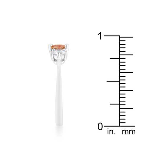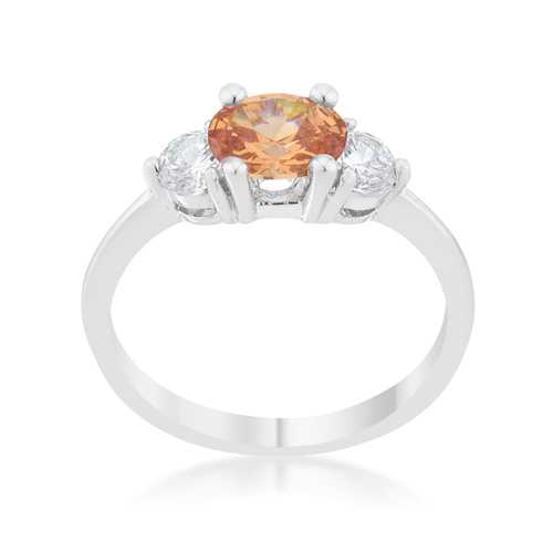 A pair of clear round cut stones accompany a champagne oval cut center stone in this elegantly simple 1.2 carat engagement ring.Base Metal: Lead Free Alloy (brass)Style: , Setting Type: ProngsMaterials: , Stone Cut: OvalPlating Color: RhodiumRing Band Width: 2mmStone Size: 3.75 Mm