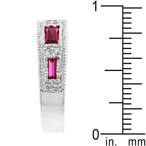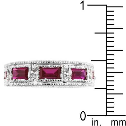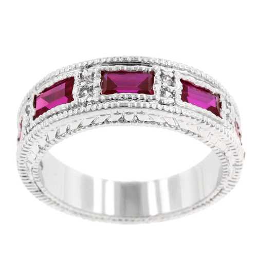 The Ruby Red Bezel Eternity Band is a 5-stone band that will bring compliments to your wardrobe from every angle. Genuine Rhodium Plating is achieved using an electroplating process that coats the item with heavy layers of rhodium a close cousin to platinum which gives our jewelry a platinum luster.Base...