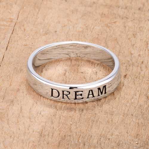This rhodium plated eternity band is crafted with the same material that gives white gold its glorious shine. DREAM is right on the band. Its elegant and appropriate for casual wear or a night out.Base Metal: Lead Free Alloy (brass)Style: , Materials: , Plating Color: RhodiumRing Band Width: 4 Mm