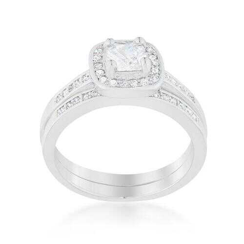 This halo style engagement ring is fashioned with round cut cubic zirconia and an infinity twisting shank. All stones are handset to perfection. Our genuine rhodium finish is achieved using an electroplating process that coats the item with heavy layers of rhodium a close cousin to platinum which gives our jewelry a platinum luster.