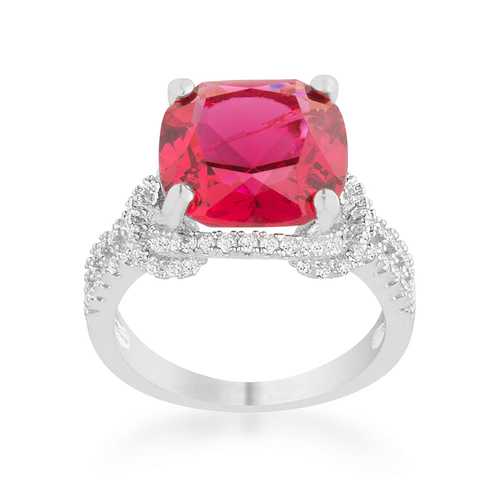Charlene 6.2ct Ruby CZ Rhodium Classic Statement Ring