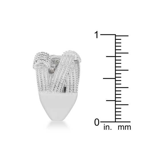Cable details mix with small clear stones to accent the contemporary design of a classic cocktail ring.Base Metal: Lead Free Alloy (brass)Style: , Setting Type: PaveMaterials: , Stone Cut: RoundColor: , Plating Color: RhodiumRing Band Width: 3 MmStone Size: 1.25 Mm