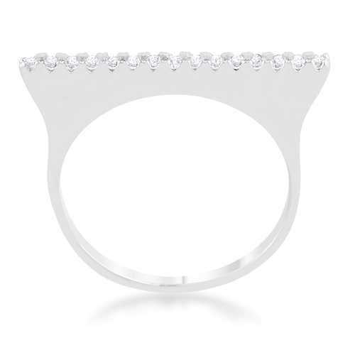 Small clear stones accent a contemporary liner style band ring for a cool modern look.Base Metal: Lead Free Alloy (brass)Style: , Setting Type: PaveMaterials: , Stone Cut: RoundPlating Color: RhodiumRing Band Width: 1.25mmStone Size: 1.25 Mm