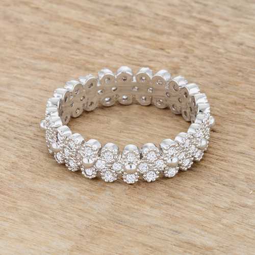 Clara 1ct CZ Rhodium Textured Bezel Set Eternity Ring