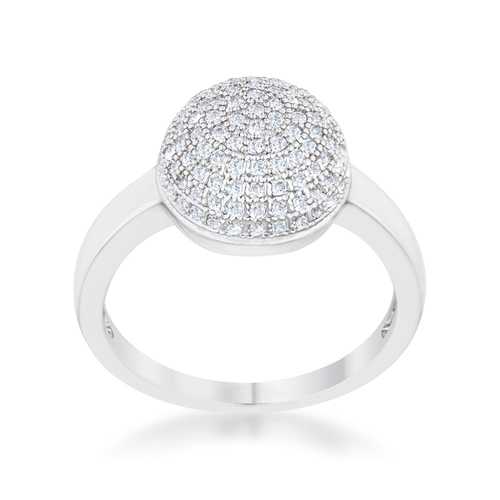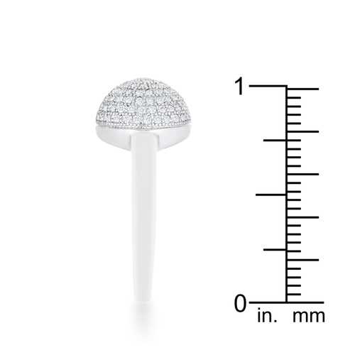 Small clear stones accent an sphere-shaped cocktail ring for a classically modern look.Base Metal: Lead Free Alloy (brass)Style: , Setting Type: PaveMaterials: , Stone Cut: RoundPlating Color: RhodiumRing Band Width: 2mmStone Size: 1 Mm