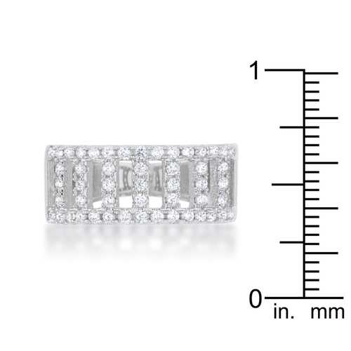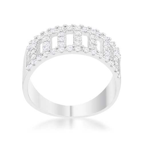 Small clear stones accent classic linear designs in this beautiful band ring.Base Metal: Lead Free Alloy (brass)Style: , Setting Type: PaveMaterials: , Stone Cut: RoundColor: , Plating Color: RhodiumRing Band Width: 3.7mmStone Size: 1.25 Mm