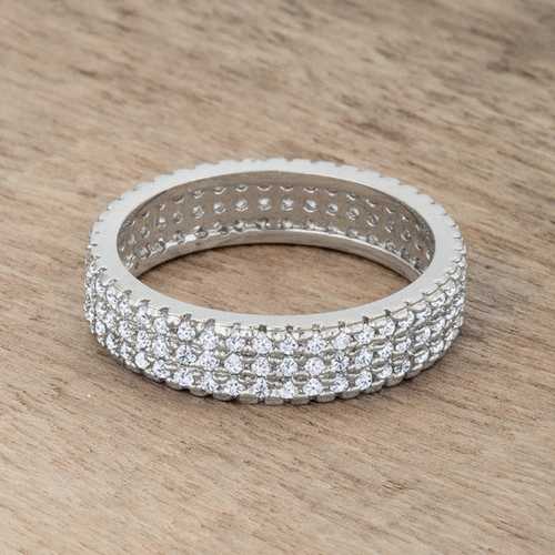 A classic eternity ring is encrusted with beautiful clear CZs in a simple band design. So the perfect mix of glam and femenine for every girl's hand.Base Metal: Lead Free Alloy (brass)Style: , Setting Type: PaveMaterials: , Stone Cut: RoundPlating Color: RhodiumRing Band Width: 5mmStone Size: 1.25 Mm