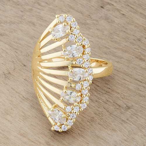 Clear pear and round shaped stones accent a flared contemporary design in this glamorous cocktail ring. The perfect mix of modern sophistication and vintage vibes.Base Metal: Lead Free Alloy (brass)Style: , Setting Type: ProngMaterials: , Stone Cut: RoundColor: , Plating Color: GoldtoneRing Band Width: 3mmStone Size: 3 X 5 Mm