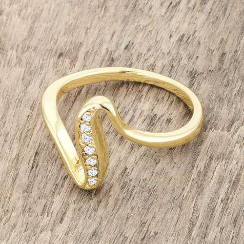 Sheryl 0.07ct CZ 14k Gold Simple Wave Ring