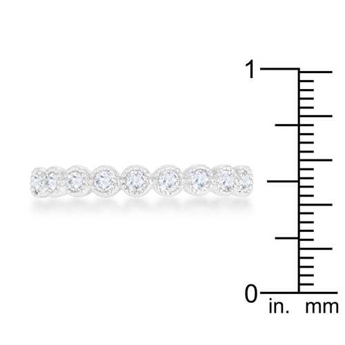 Small pave set stones accent the setting of a classic band ring for a delicate look.Base Metal: Lead Free Alloy (brass)Style: , Setting Type: BezelMaterials: , Stone Cut: RoundPlating Color: RhodiumRing Band Width: 1.5 MmStone Size: 2 Mm