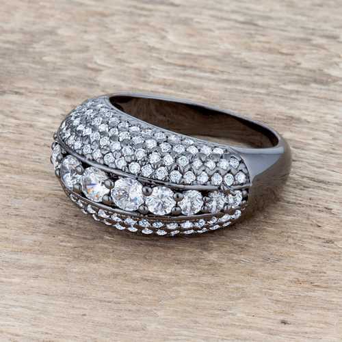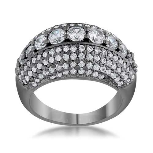 A mix of round stones are strewn throughout a contemporary dome-style piece.Base Metal: Lead Free Alloy (brass)Style: , Setting Type: PaveMaterials: , Stone Cut: RoundPlating Color: Gunmetal/hematiteRing Band Width: 3 MmStone Size: 1.15 Mm