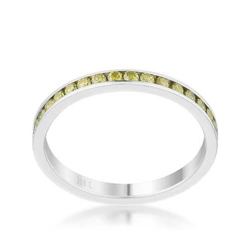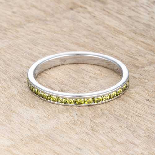 Small peridot stones come full circle in this simple and delicate eternity bandBase Metal: Stainless SteelStyle: , Setting Type: ChannelMaterials: , Stone Cut: RoundPlating Color: SilvertoneRing Band Width: 2 MmStone Size: 1.5 Mm