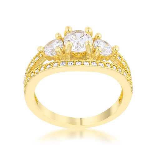 Clear stones accent the setting of a modern trio ring for a modernly classic look.Base Metal: Lead Free Alloy (brass)Style: , Setting Type: PaveMaterials: , Stone Cut: RoundPlating Color: GoldtoneRing Band Width: 2.5mmStone Size: 5.5 Mm