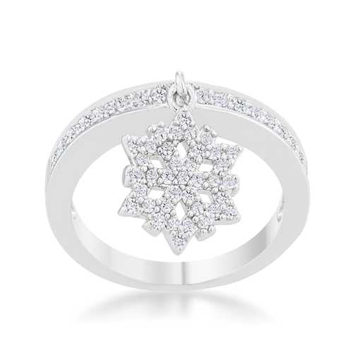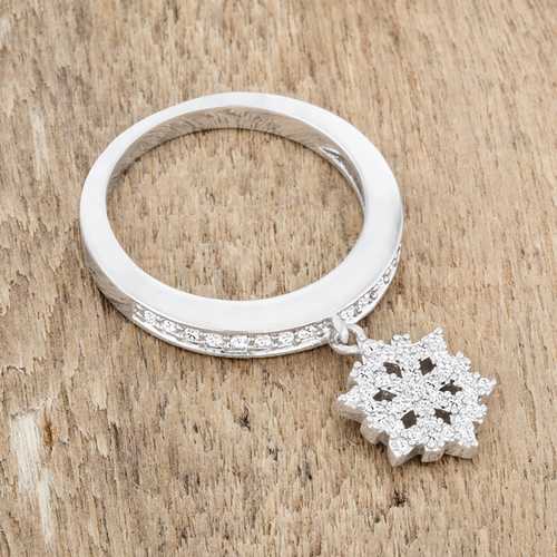Snowflake 0.35ct CZ Rhodium Simple Holiday Charm Band Ring
