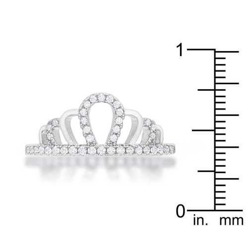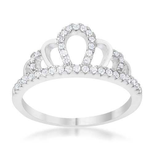 Clear stones accent a simple crown design in this feminine crown ring.Base Metal: Lead Free Alloy (brass)Style: , Materials: , Stone Cut: RoundCarat Weight: 0.2ctPlating Color: RhodiumRing Band Width: 1.5mmStone Size: 1 Mm