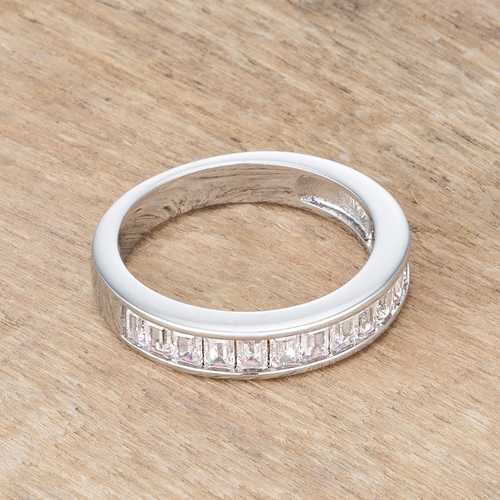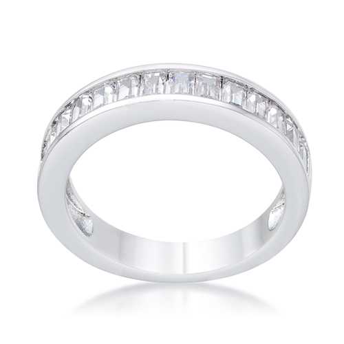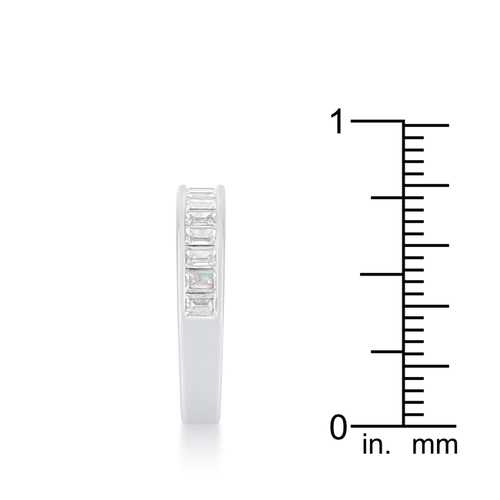 Baguette Cut CZ Rhodium Wedding Band