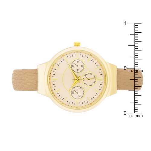 Reyna Gold Beige Leather Cuff Watch