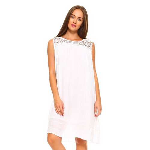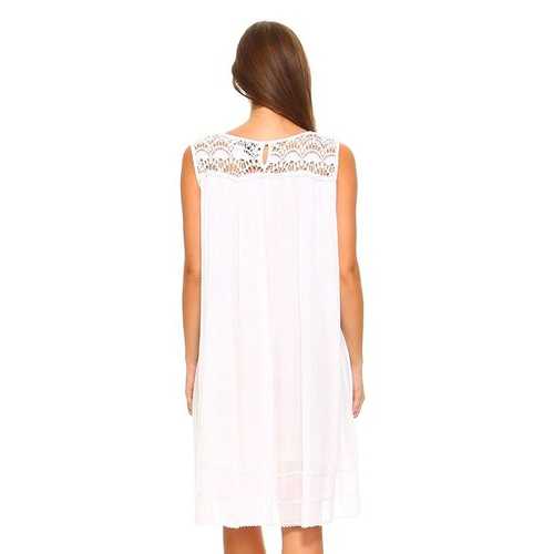 Go to the shopThis light-weight tunic dress works perfectly as a beach coverup with crochet detailing on the neck.