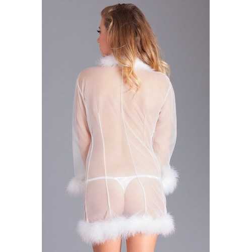 Sheer short length robe with marabou feather trim Includes thongPoly bag packaging Packaging dimensions (in): 14x14x2Size: O/SColor: White
