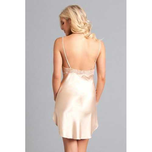 Lace-trim satin slip V-neck adjustable straps pulls on; no closure lace trim at neckline and back shirttail hem Imported polyester/nylonBox packaging Packaging dimensions: 10x7x1Size: LColor: Nude