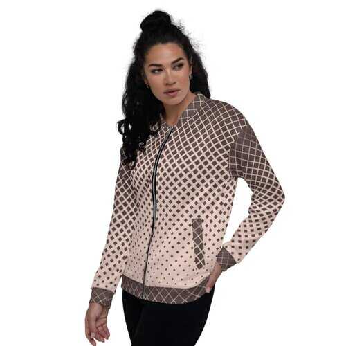 Womens Jackets, Burgundy Half-Tone Style Bomber Jacket