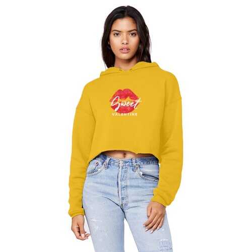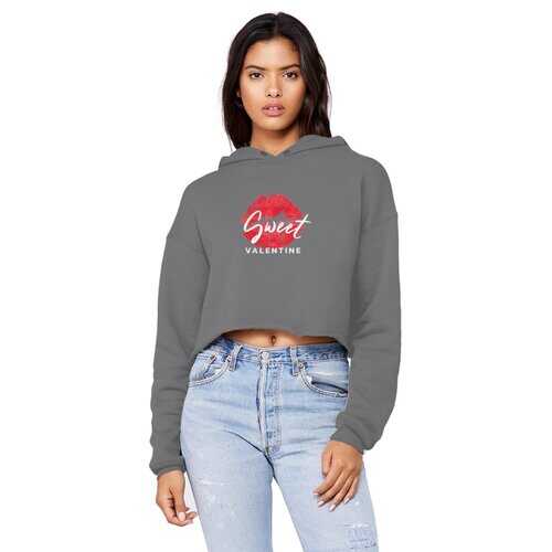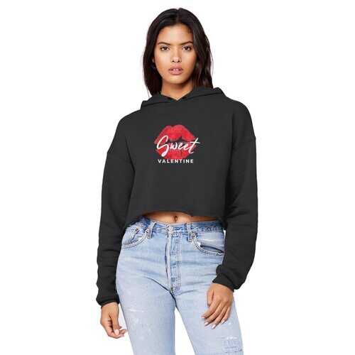 Sweet Valentine White Graphic Text Raw Edge Cropped Hooded Shirt