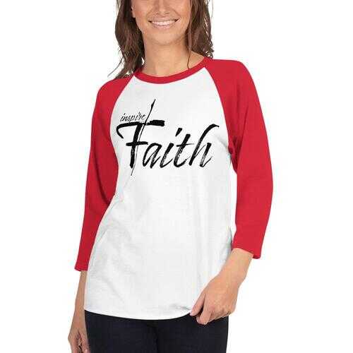 Womens Sport Tees, Inspire Faith Graphic Text Style Raglan Shirt