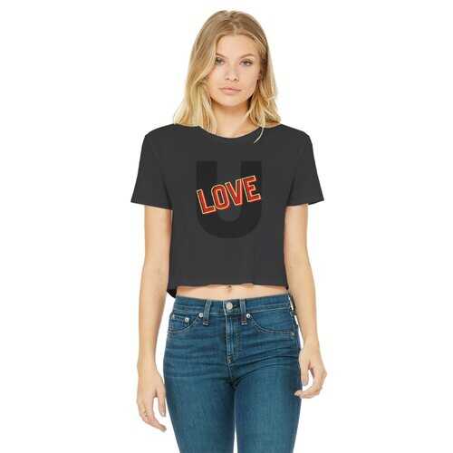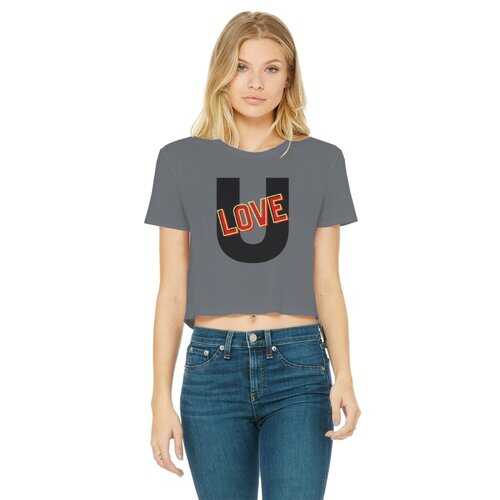 Love U Graphic Style Womens Classic Cropped Raw Edge T-Shirt