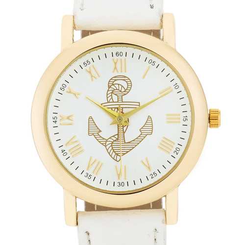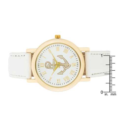 Natalie Gold Nautical Watch With White Leather Band