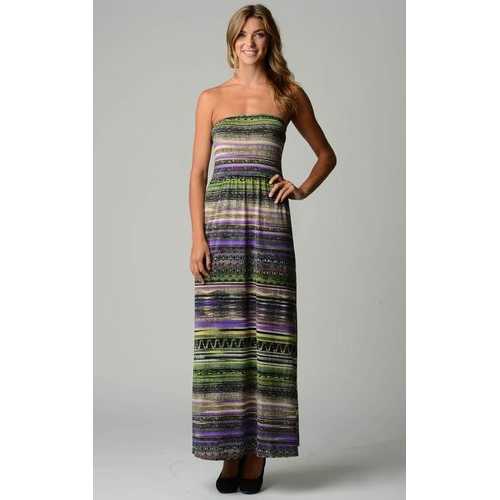 Abstract Stripe Strapless Maxi Dress Model is wearing a size Small 95% Polyester 5% Spandex Machine Wash Cold Imported Style #: DF234-2J