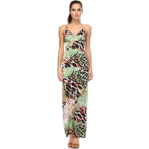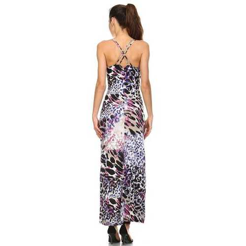 Go to the shopDouble strap maxi dress with a crisscross back, v-neckline and fun animal prints to complete the perfect outfit.