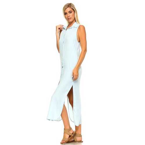 Go to the shopThis button down denim dress features slits on the side and looks great with a belt!
