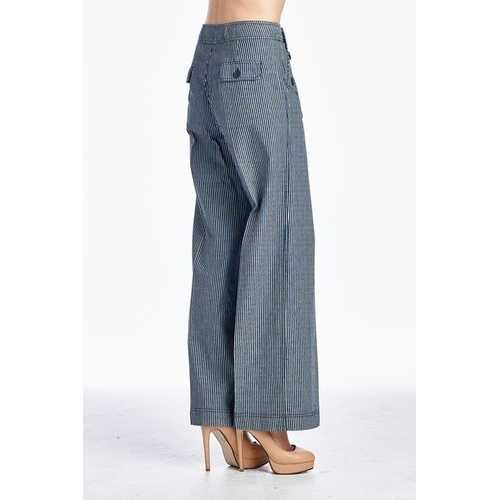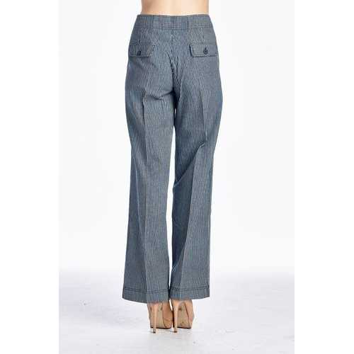 Larry Levine Pinstripe Pants Model is wearing a size 6 100% Cotton Machine Wash Cold Made in China Style #: SP812KAR5